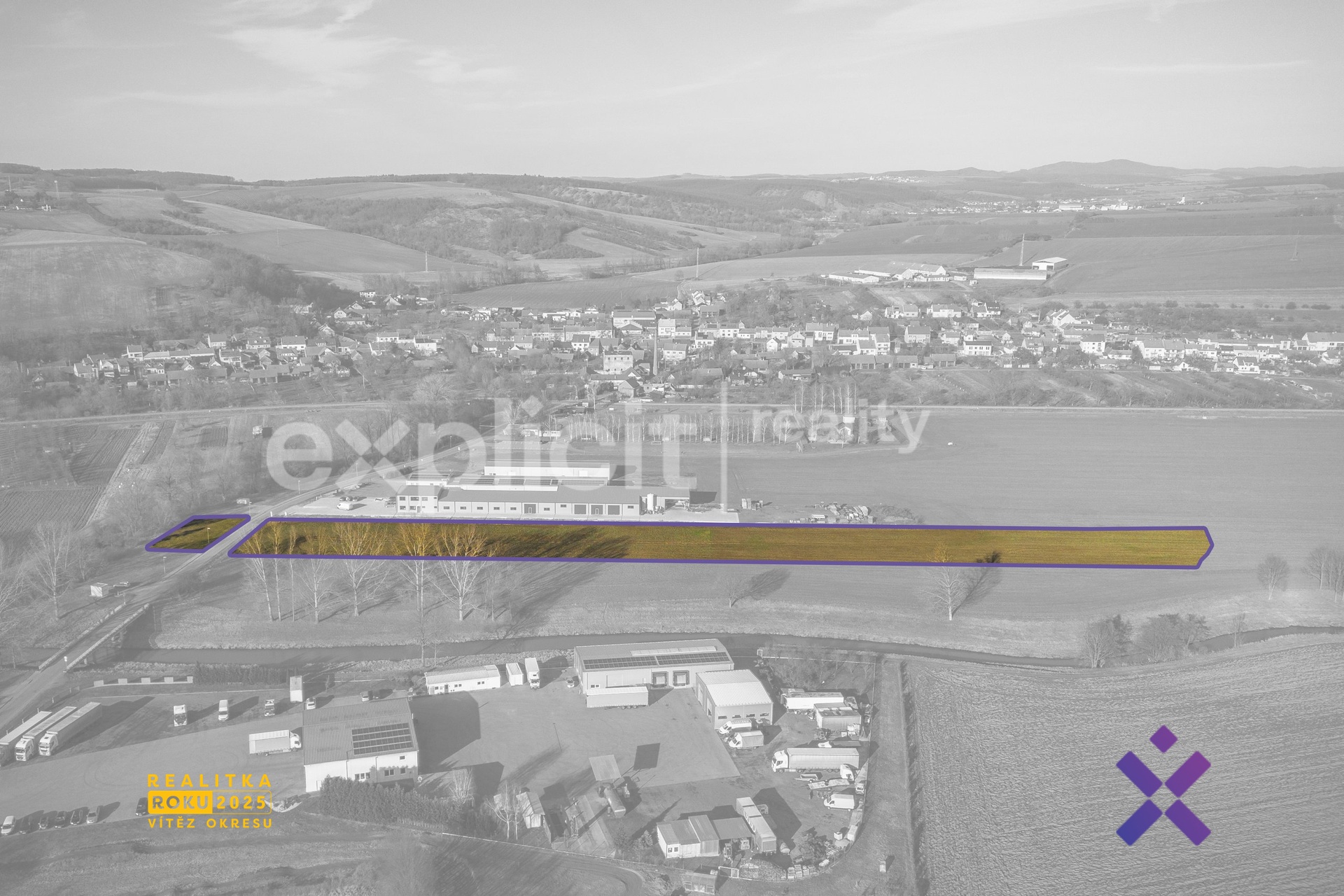 ID 02672 | Filip Hladiš & Explicit Reality Hledáte strategické místo pro podnikání, výrobu nebo skladování s výbornou dostupností? V průmyslové zóně v Drslavicích, jen minutu od sjezdu z E50, pro Vás máme soubor pozemků o celkové výměře 11 640 m2, který představuje zajímavou příležitost pro budoucí komerční využití. Lokalita je dle územního plánu dlouhodobě určena pro rozvoj výroby a skladování a v okolí již existují nebo se připravují další podnikatelské projekty. Pozemky mají přímou návaznost na veřejnou komunikaci a díky poloze u hlavního tahu nabízí skvělou dopravní dostupnost. - celková plocha pozemků 11 640 m2 - druh pozemku: orná půda a trvalý travní porost - pozemky mají nepravidelný tvar - šířka pozemků cca 26-36 m, délka místy přes 300 m - přístup je zajištěn z veřejné komunikace ve vlastnictví obce Drslavice - přístup k pozemku je z přední strany přes pozemky obce Drslavice a ČR - sjezdy na pozemek nejsou aktuálně vybudované - výborná dostupnost jen 1 minuta od sjezdu z E50 - elektřina je dostupná na hranici pozemku, včetně existující přípojky - vodovodní řad se nachází na hranici příjezdové komunikace; napojení je možné - kanalizace se přímo na pozemku nenachází, nejbližší je cca 150 metrů severně - plynovod STL se nachází u příjezdové komunikace - plyn a ostatní napojení je potřeba prověřit v rámci konkrétního záměru - pozemky jsou vedeny převážně jako plochy výroby a skladování - plocha navrhovaná - hlavní využití: výroba, skladování, manipulace - přípustné využití: průmyslová výroba, zemědělská a lesnická výroba, související dopravní a technická infrastruktura, doplňková zeleň, zařízení pomocných výrobních a nevýrobních provozů, doplňkové služby související s hlavním využitím, například podnikové prodejny - nepřípustné využití: všechny ostatní činnosti, zařízení a stavby, které nesouvisí s hlavním nebo přípustným využitím - výška zástavby nesmí narušovat hladinu okolní stávající zástavby - výstavba musí respektovat protipovodňová opatření a požadavky správce toku, může vzniknout nutnost navýšení terénu - půda je nadprůměrně produkční, vysoce chráněná - třída ochrany II - pozemek se nachází v záplavovém území Q20 a Q100, menší část zasahuje také do aktivní zóny - výstavba je možná, ale musí respektovat podmínky protipovodňové ochrany - ne celý pozemek je využitelný pro výstavbu - část území je určena pro dopravní infrastrukturu - budoucí komunikaci - menší část spadá do ploch technického zabezpečení obce - území spadá do oblasti s možným výskytem archeologických nálezů - pozemky jsou aktuálně zemědělsky využívány - je možné pokračování nebo ukončení užívání dle smluvních podmínek - lokalita je v územním plánu dlouhodobě určena pro rozvoj podnikatelských aktivit Tato nabídka je zajímavá pro investory a firmy, které hledají dobře dostupné území s potenciálem budoucího rozvoje v komerční zóně, ale zároveň počítají s tím, že využití pozemku bude potřeba detailně prověřit a přizpůsobit konkrétním technickým, právním i územně-plánovacím podmínkám. Vizualizace a vyobrazení pozemku jsou pouze ilustrativní. Závazné údaje o hranicích, využití a možnostech výstavby je nutné ověřit dle územního plánu, katastrální mapy a vyjádření příslušných správců sítí a úřadů. Líbí se Vám tato nemovitost? Potkejme se osobně na místě, co Vy na to? Zavolejte mi nebo napište a já Vám sdělím veškeré detaily do poslední cihly. Chtěli byste, abych i Vás zastupoval při prodeji? Stačí mi napsat, jsem tu pro Vás kdekoli a kdykoli. Těším se na Vás :) Hladiš - Reality